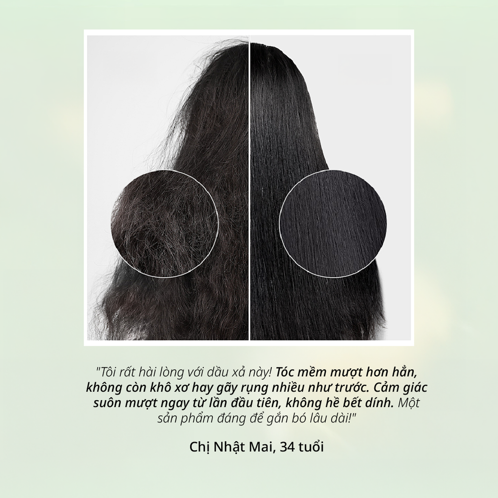 Dầu xả kết hợp các thành phần từ thiên nhiên giúp tóc trông mềm mại, nhẹ nhàng và bồng bềnh hơn sau mỗi lần gội. Hỗ trợ kiểm soát dầu thừa, giảm cảm giác bết dính và duy trì độ ẩm cho tóc. Phù hợp với tóc mỏng, dễ gãy và da đầu dầu.